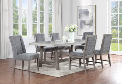 | Characteristics of goods | Gracie Oaks The sturdy wire brush base adds a rustic touch, perfectly complementing the contemporary top. Accompanying the table are stylish dining chairs upholstered in gray bouclé fabric, providing a textural and cozy seating experience. Details: Transform your dining space with our modern dining table, now available for your sophisticated home. This table features a unique faux concrete design, offering an industrial yet elegant aesthetic. The set is further enhanced by two luxurious host chairs, designed with soft arms for added comfort, and matching gray bouclé fabric, ensuring a seamless and elegant look. | ||
