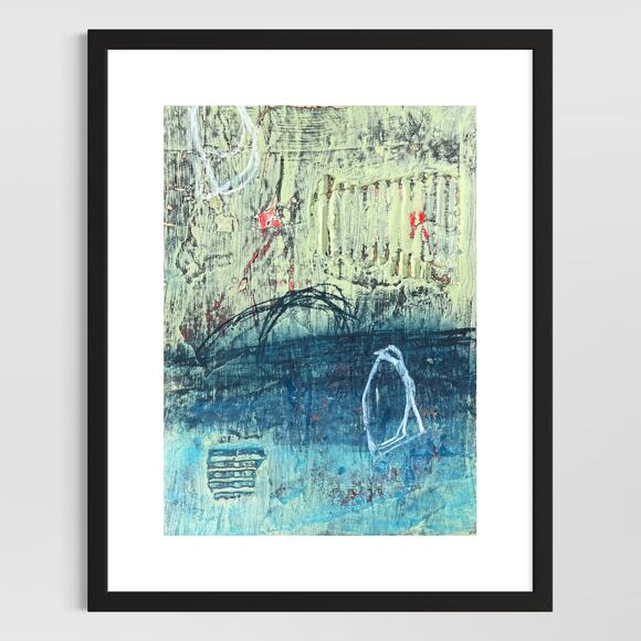 Original Minimalist Modern Art Collage Painting 8.5x11 "Laetificate" Signed Painting