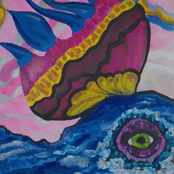 "Sea Monster" Fold Art - Abstract -Original Painting by Artist Rachael Potter