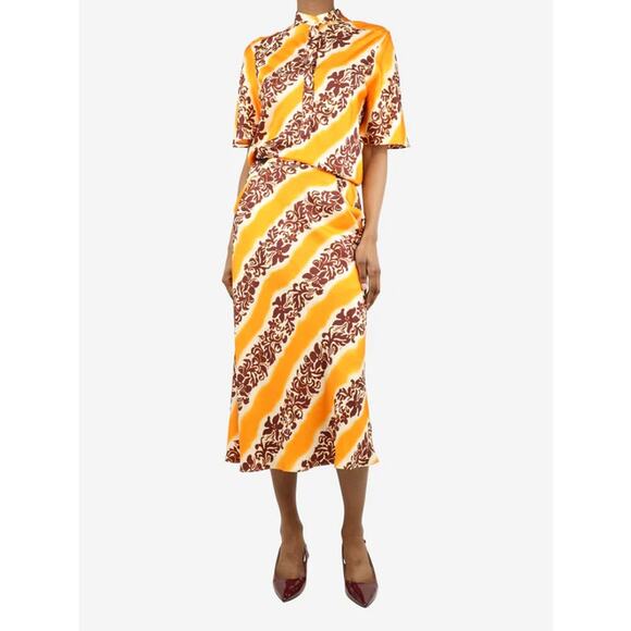 - Women > Dresses > Christopher Esber Printed Silk Midi Dress Orange Tiger Hibiscus Size 10 Midi